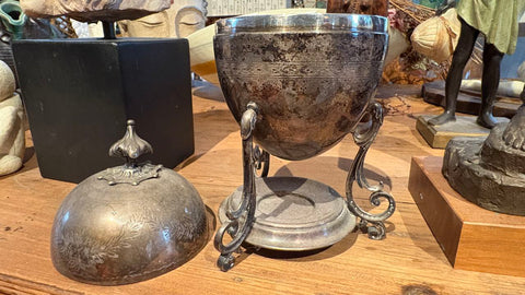 This Victorian silver bird nest egg coddler is a beautiful antique piece, showcasing exquisite craftsmanship and timeless design. Featuring a delicate engraved silver body with intricate floral patterns, this coddler is mounted on elegant metal feet, giving it a regal and vintage appeal. Perfect for collectors of Victorian antiques or those looking to add a touch of history to their home décor.